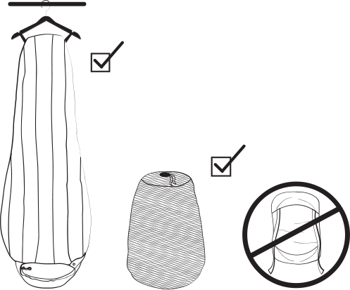 Notice : Please give your new down sleeping bag a good 5 minute shake and run it in the dryer on no heat for 5 minutes to give it back its loft after being compressed during transit to save you money. Store your down bag uncompressed in a cool, dry place. Spread it out under your bed, hang it in a closet, or put it in a bag, breathable storage bag (like a laundry bag or a king-size pillowcase).