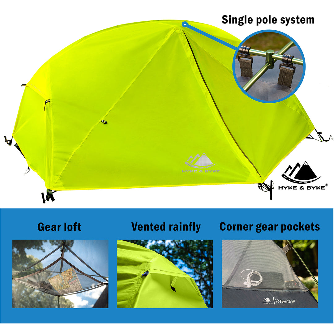 Constructed with more durable materials and a super-convenient single-pole design, the Zion 2P offers more features and more headroom. And it sets up in minutes! Perfect for the ultralight, backpacker - or the casual camper - this all-in-one package will up your pack weight by about 6lbs, or under 4lbs using our ultralight configuration (see photos).